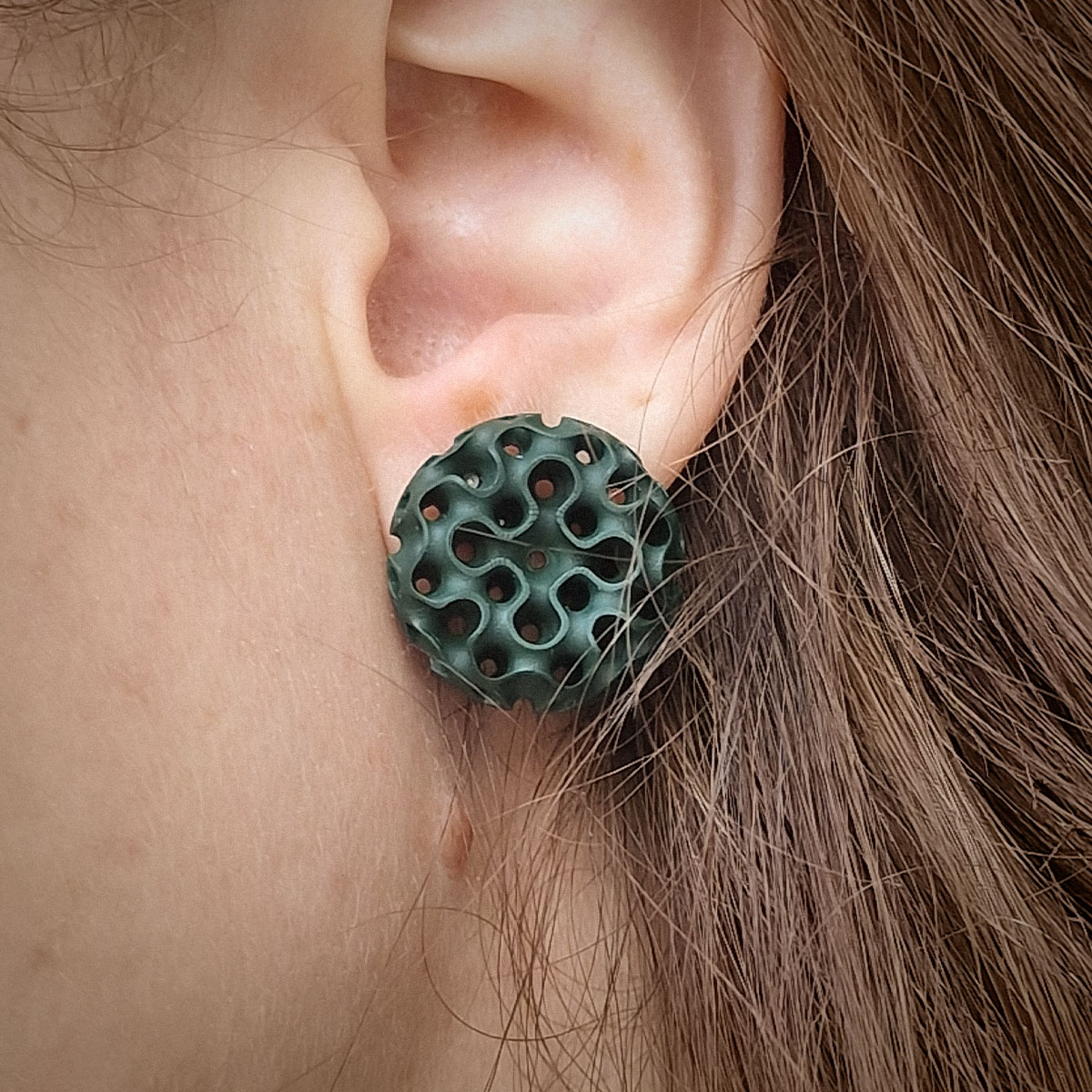 Materiales: resina ultraligera impresa en 3D y botón con mariposa de titanio biocompatible