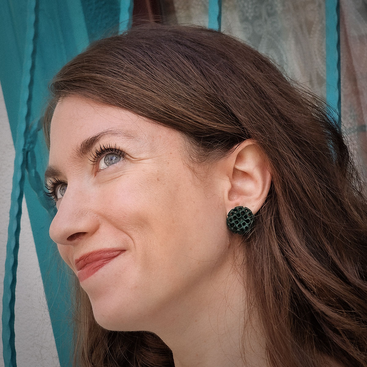Pendientes Capella en color verde bosque. Su tono orgánico aporta vida al diseño de Capella y lo convierte en una pieza alegre y sofisticada.