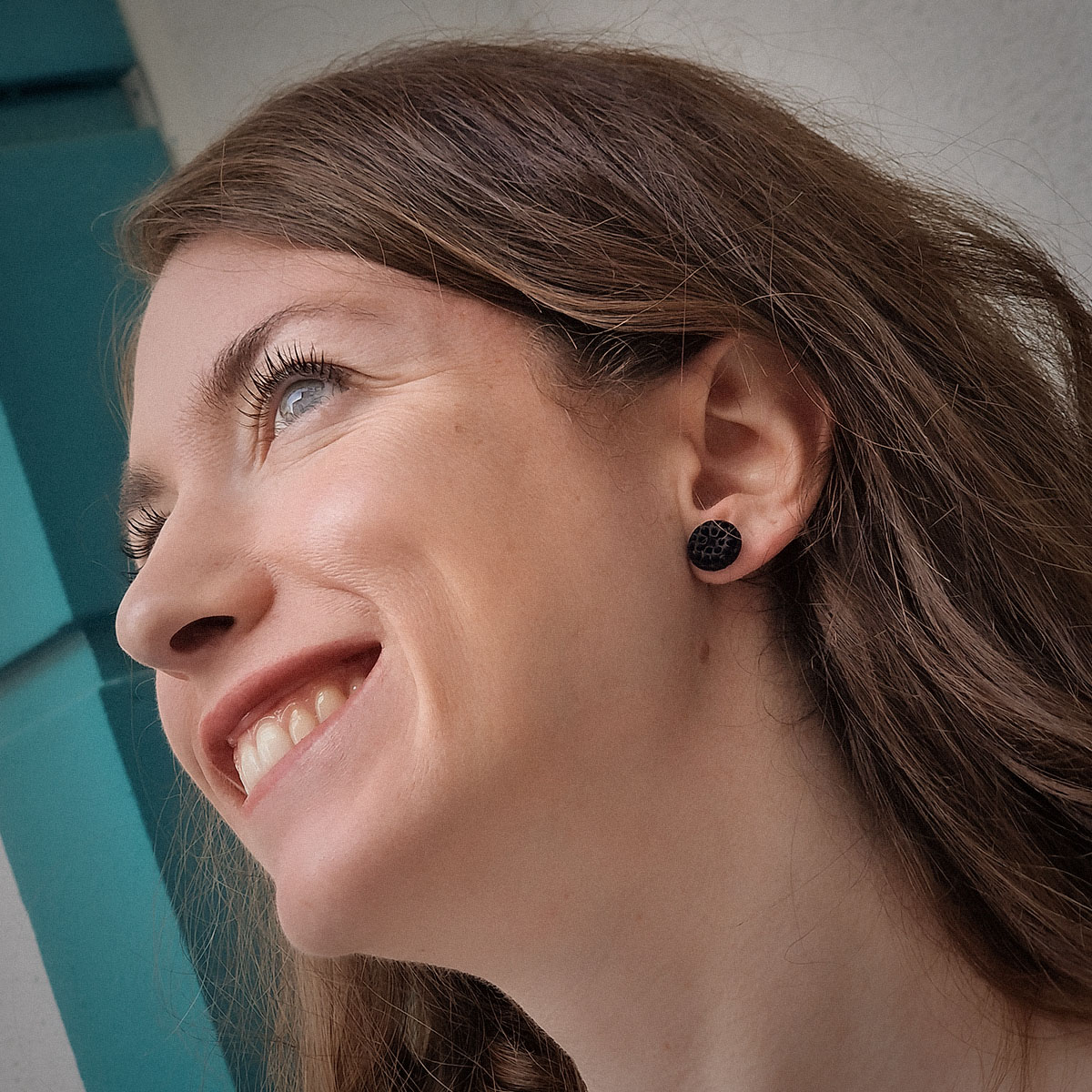 El negro resalta la forma con precisión y profundidad, convirtiendo este botón de 12 mm en una microescultura discreta pero magnética.