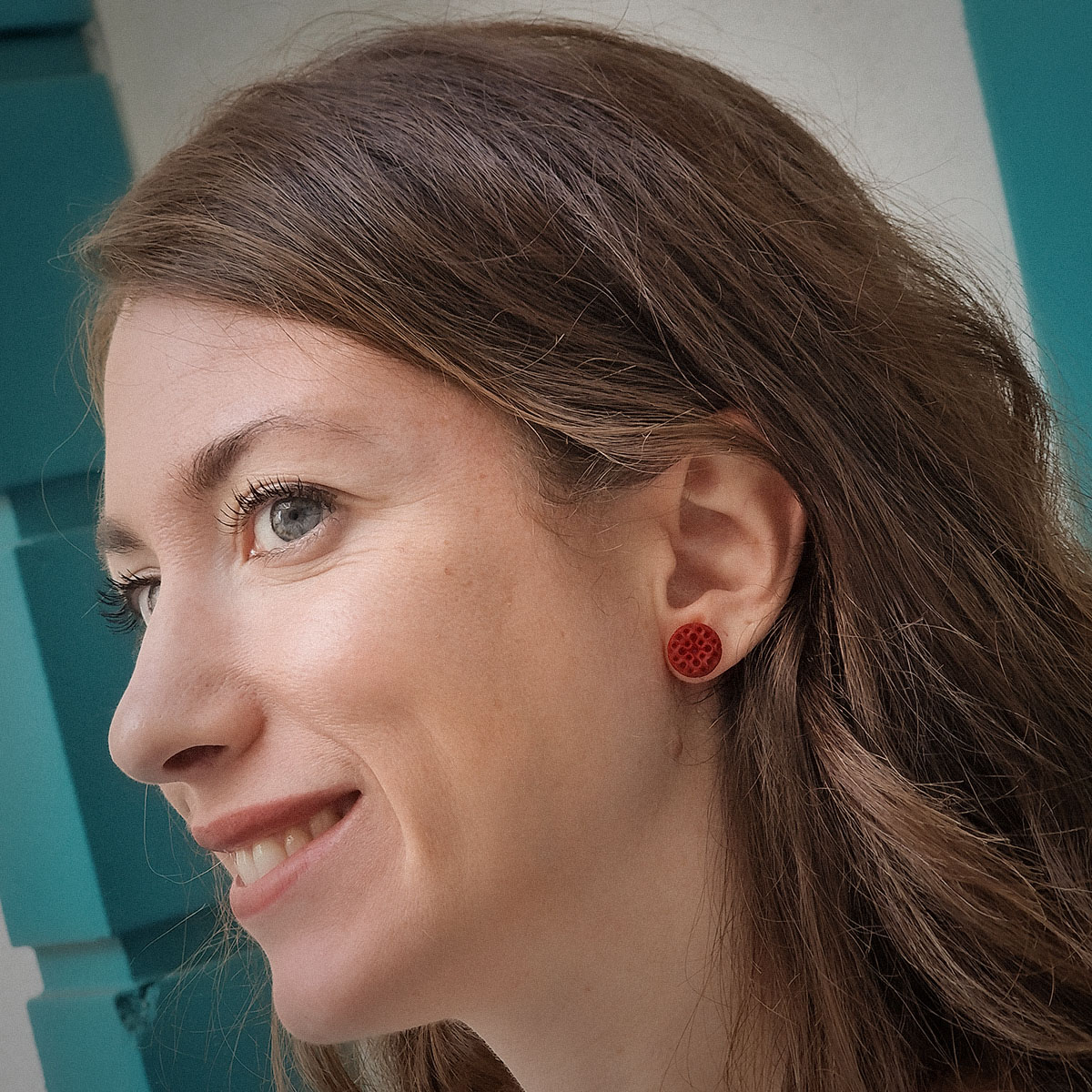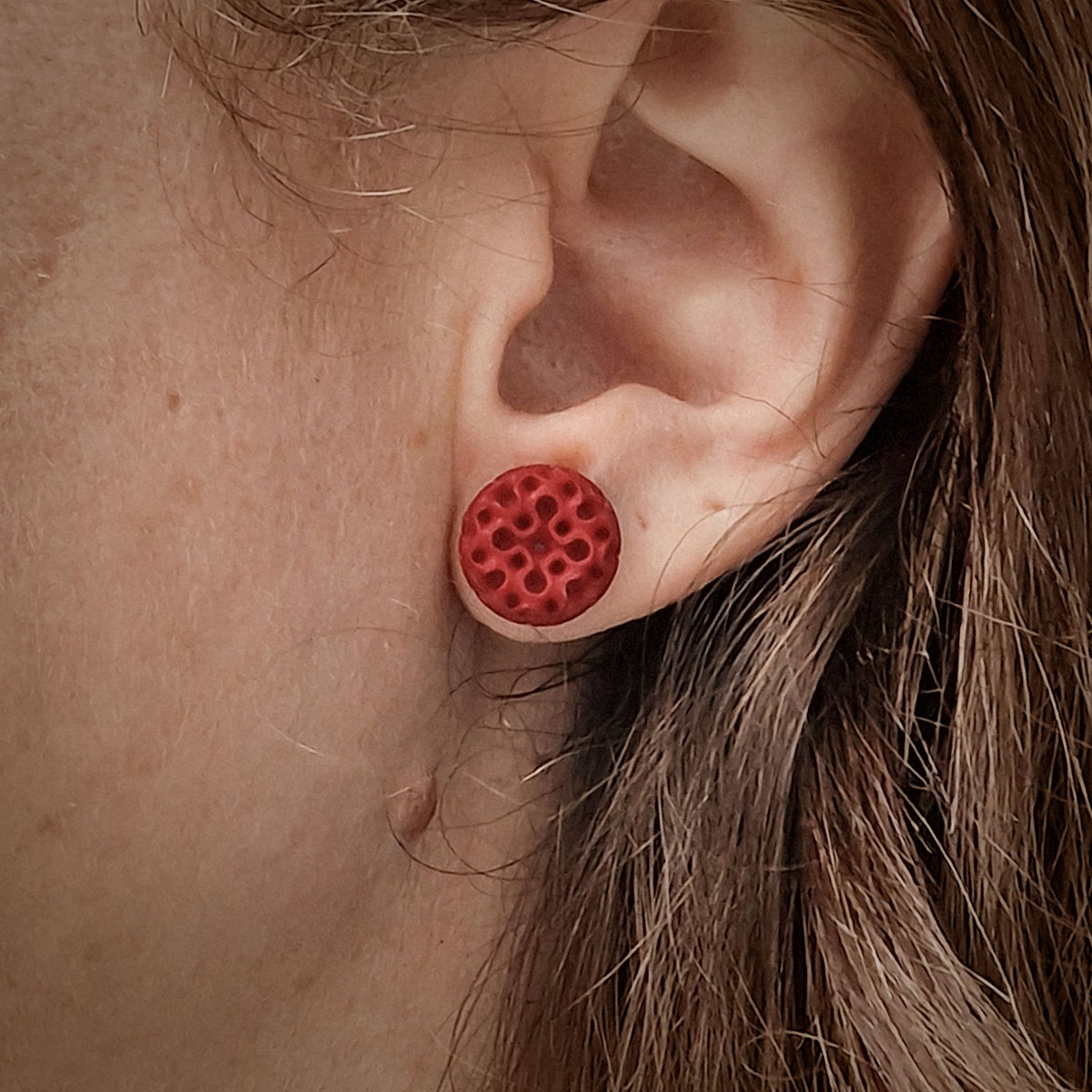 Los pendientes Spica en rojo carmín son un pequeño foco de emoción e intensidad. Su acabado artesanal acentúa su carácter único.